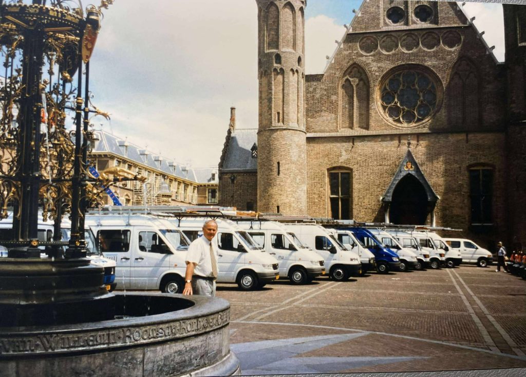 Bussen van monumentenwachten uit heel Nederland op het Binnenhof in 1998. Foto: Henk de Bruin